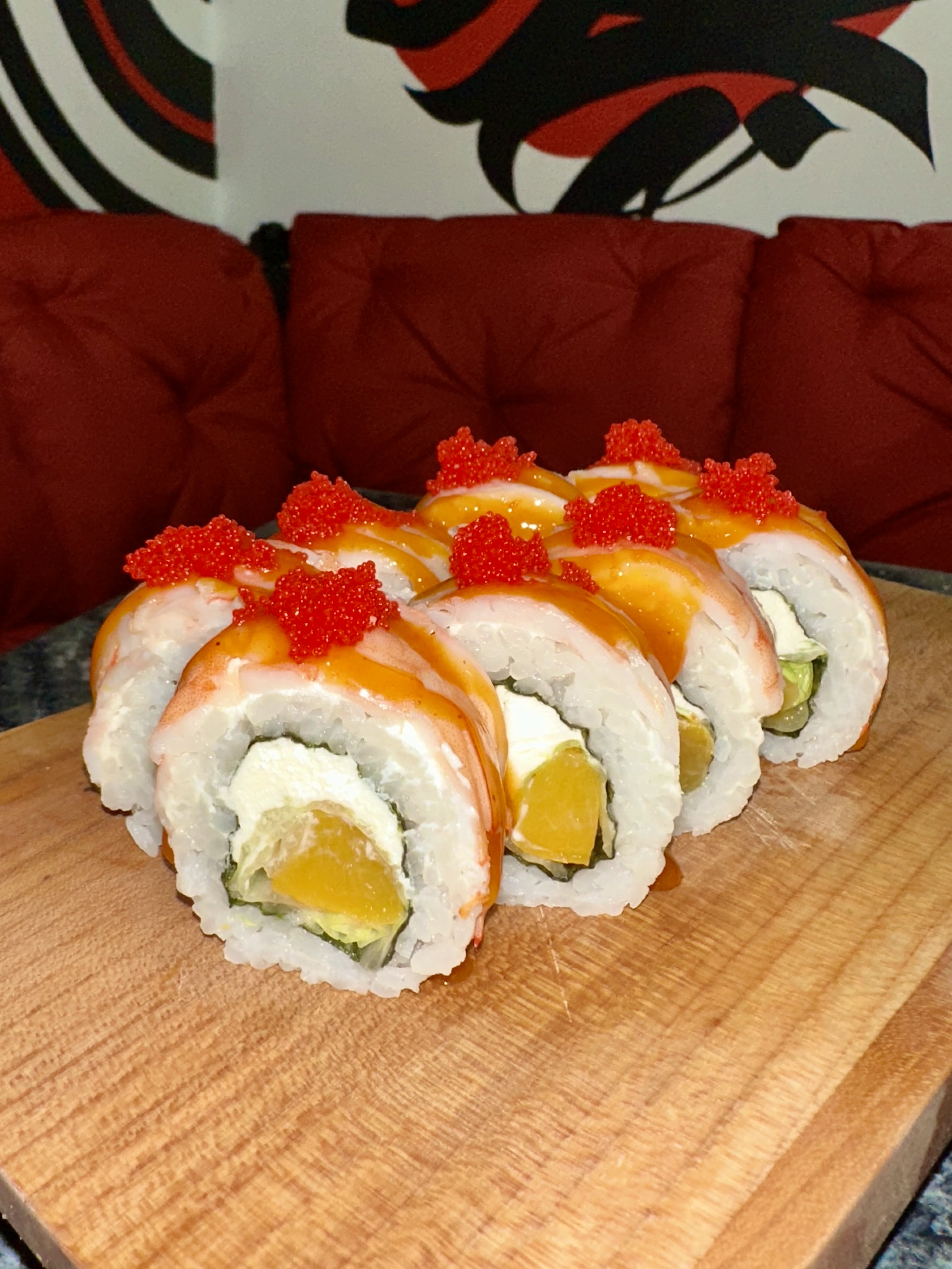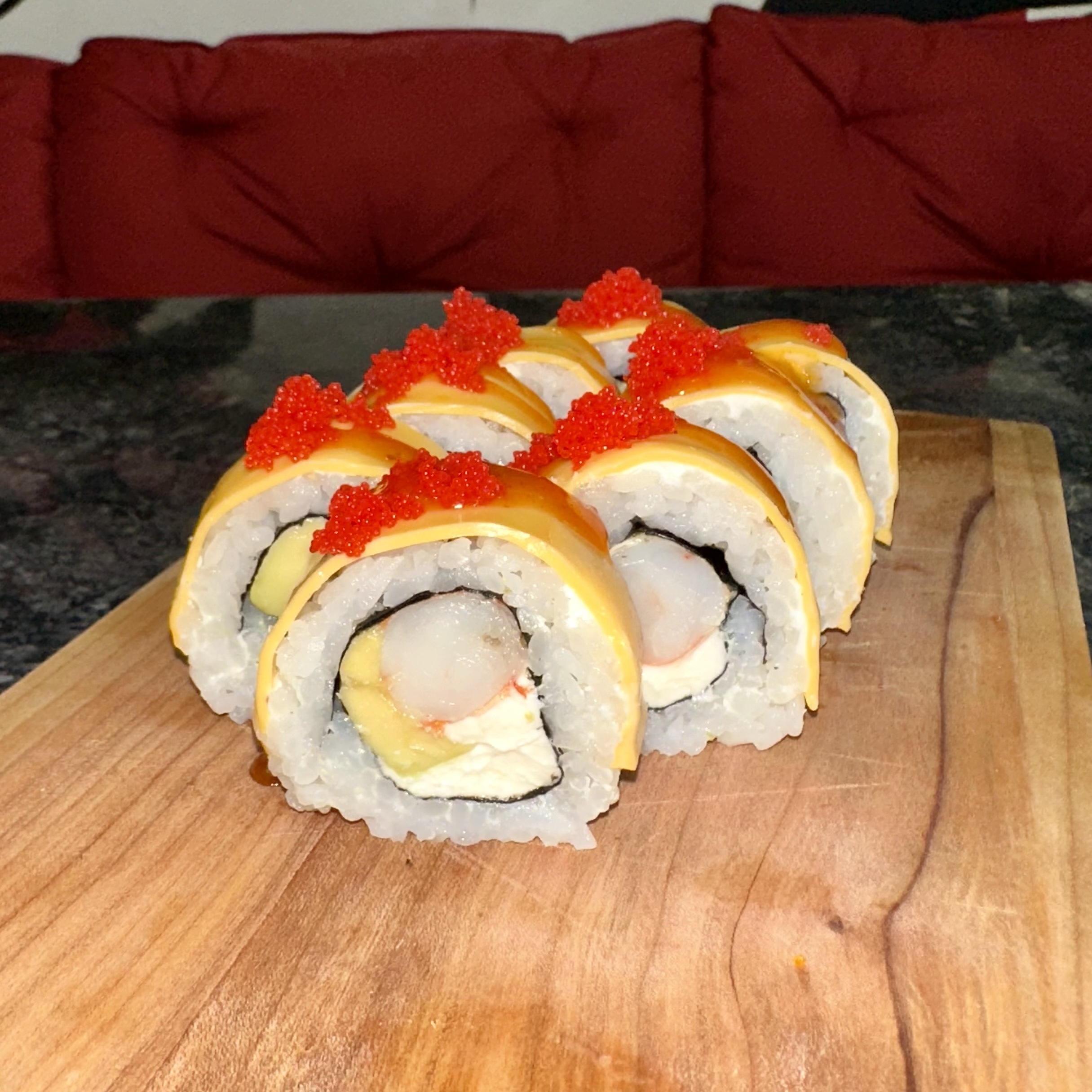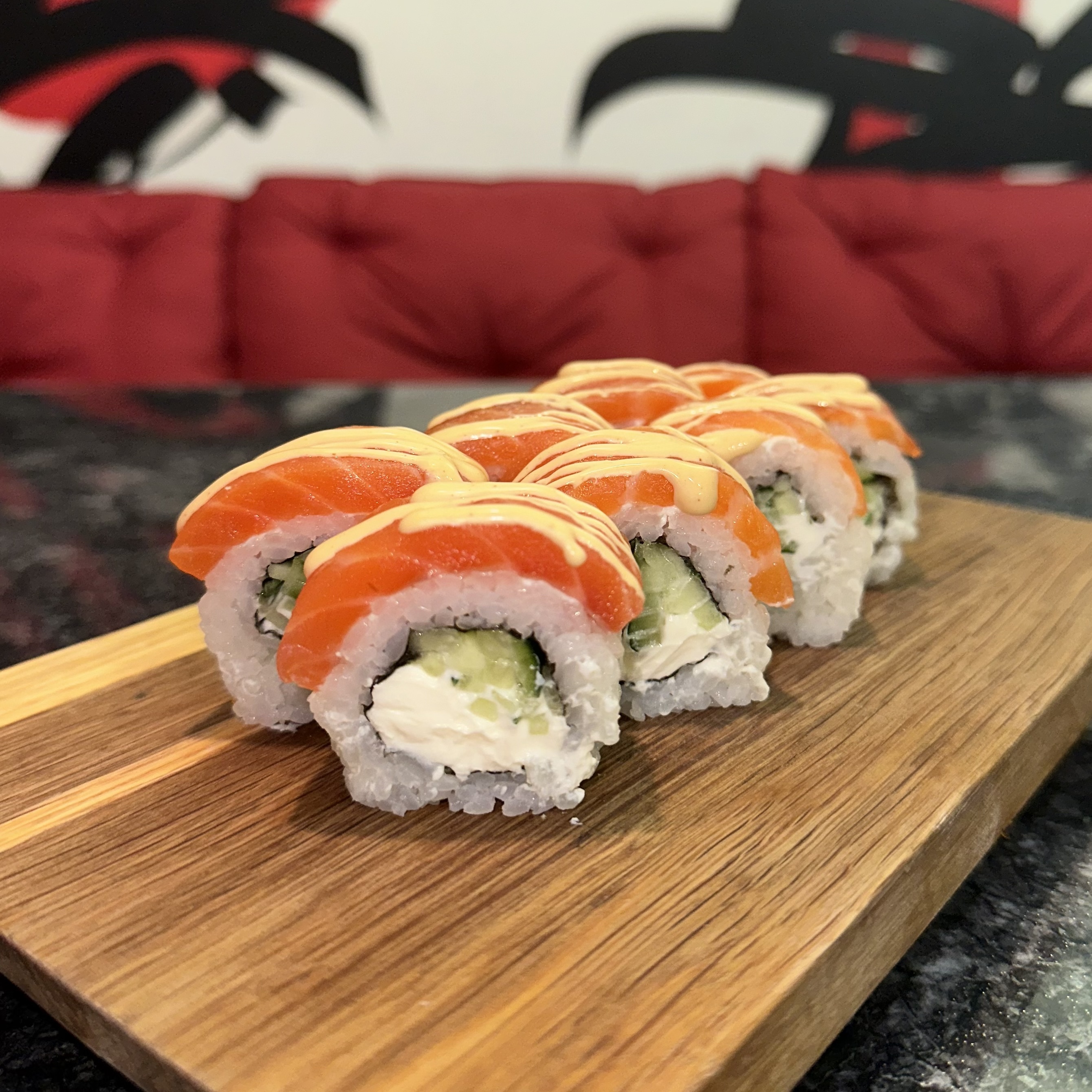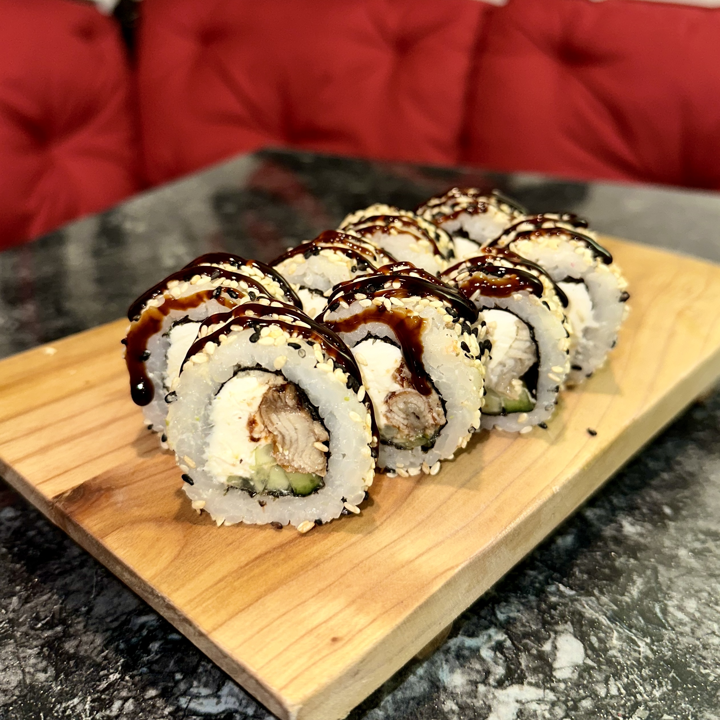 • Крем-сир• Філе тунця• Креветки• Авокадо• Чорнила каракатиці• Ікра летючої риби• Соус Спайсі
