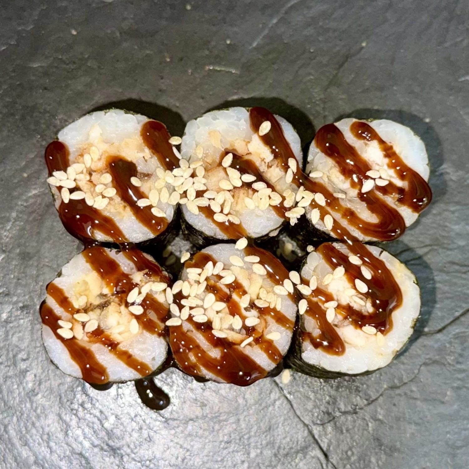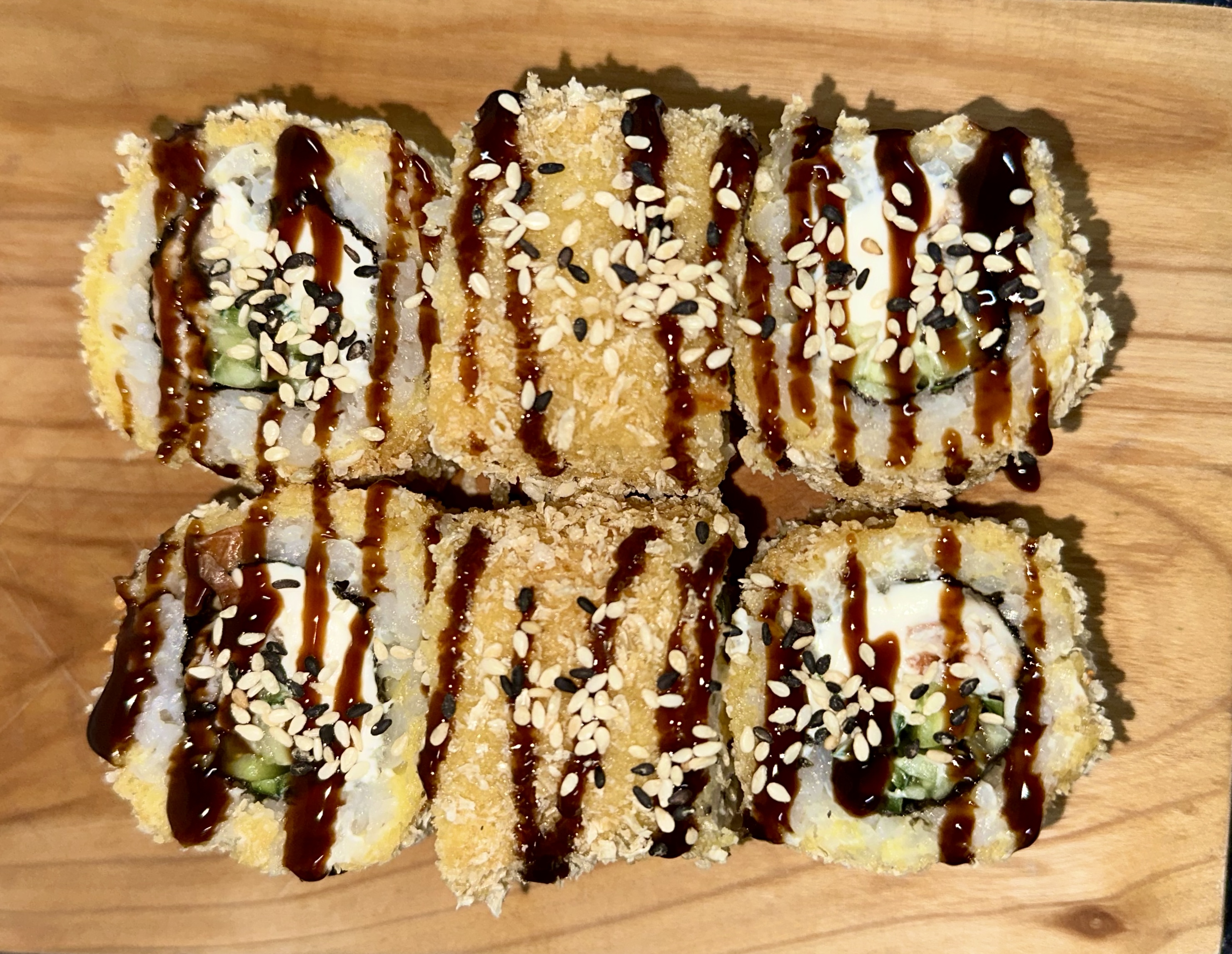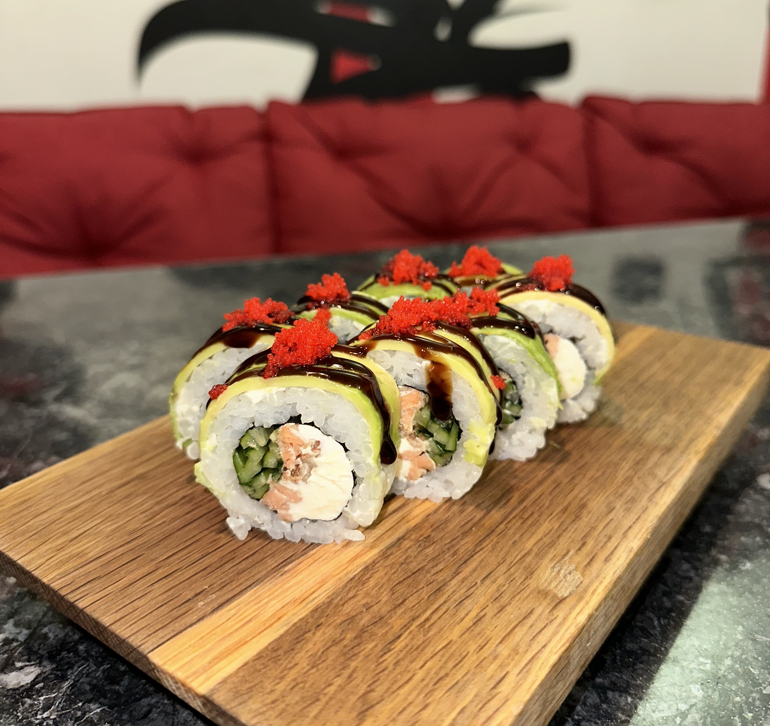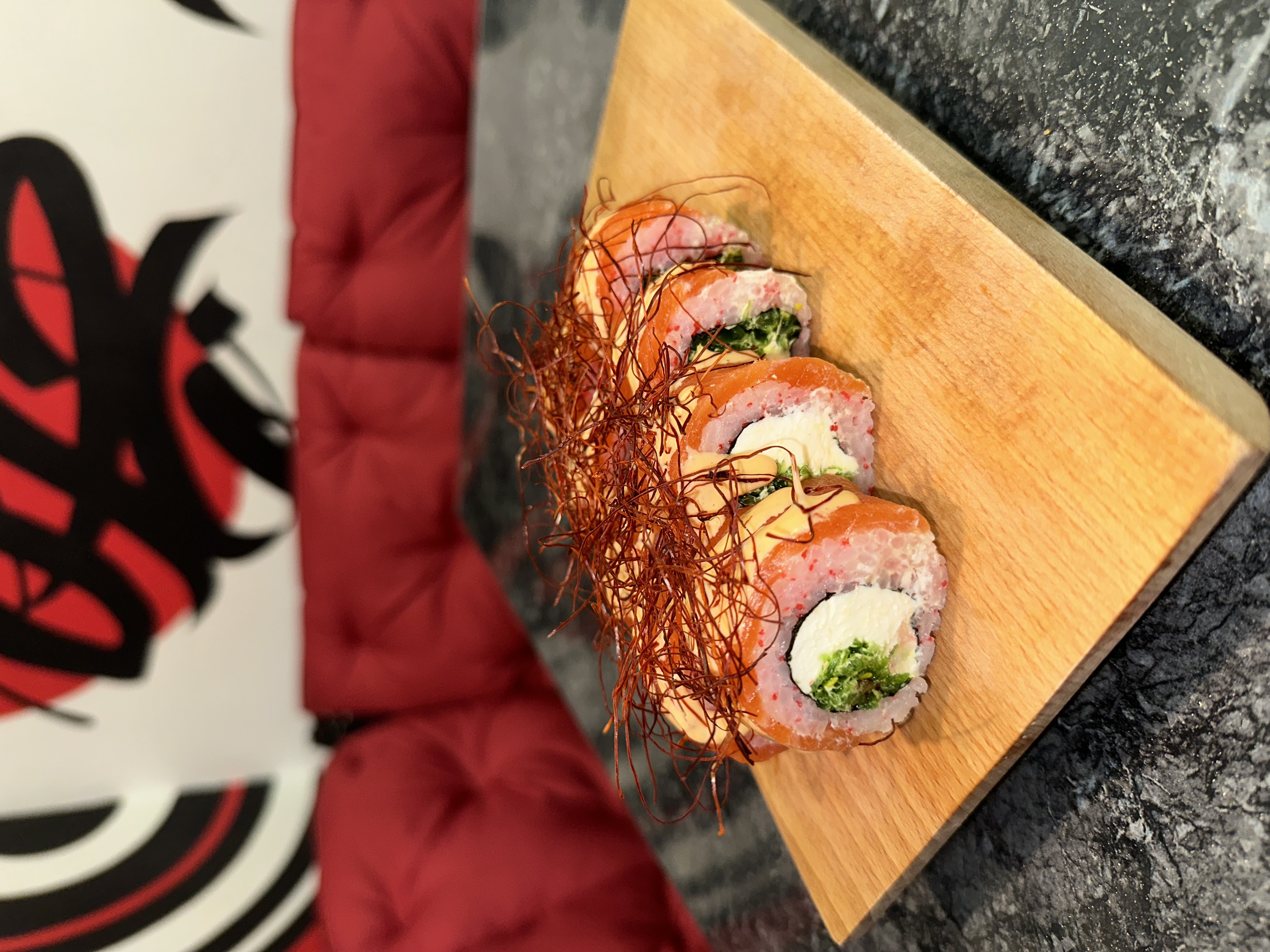 • Крем-сир• Філе тунця• Креветки• Авокадо• Чорнила каракатиці• Ікра летючої риби• Соус Спайсі