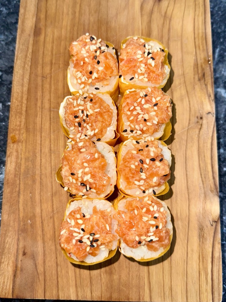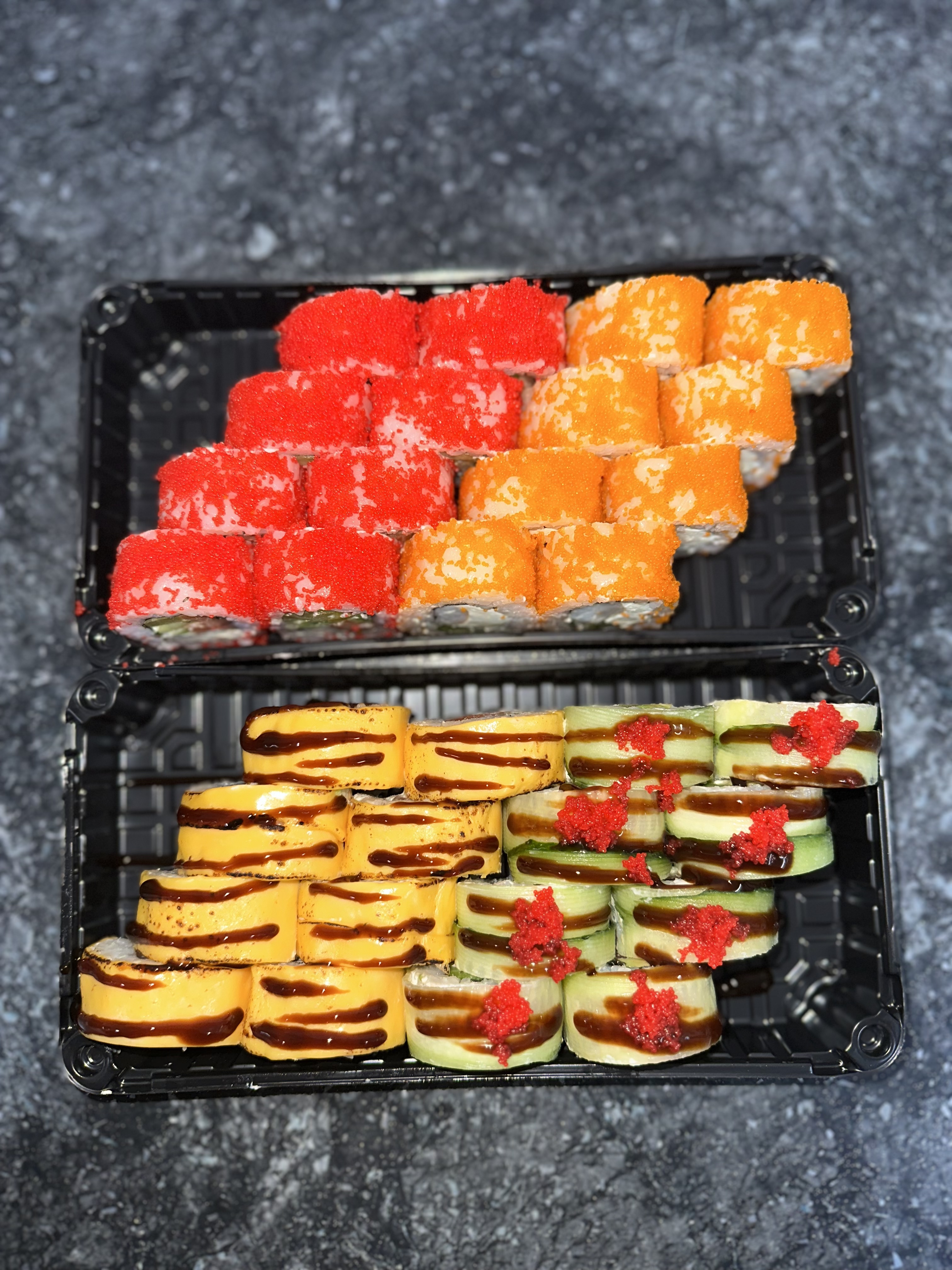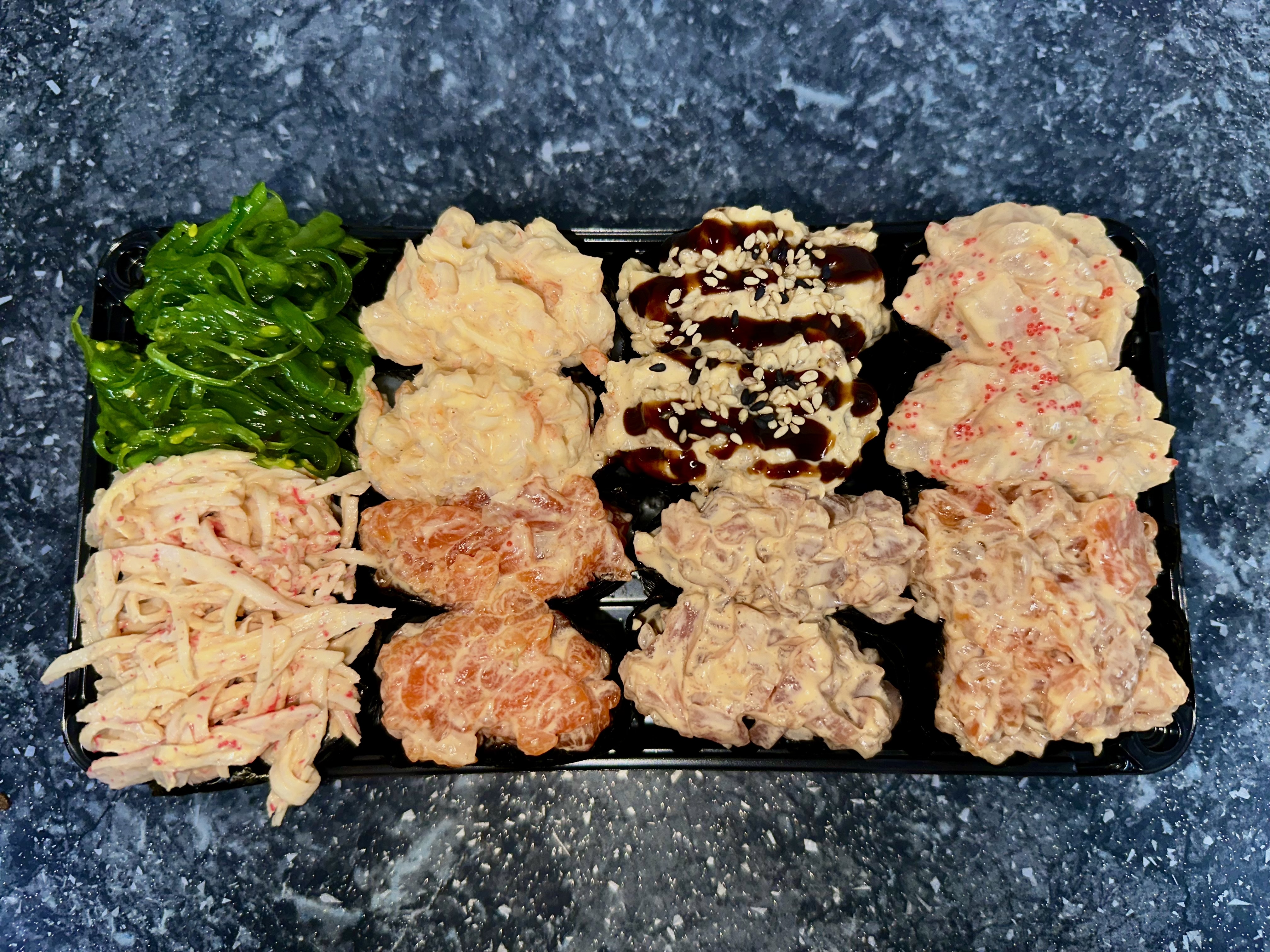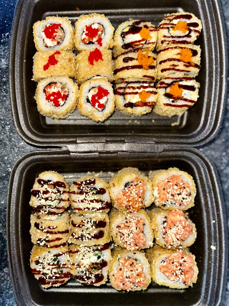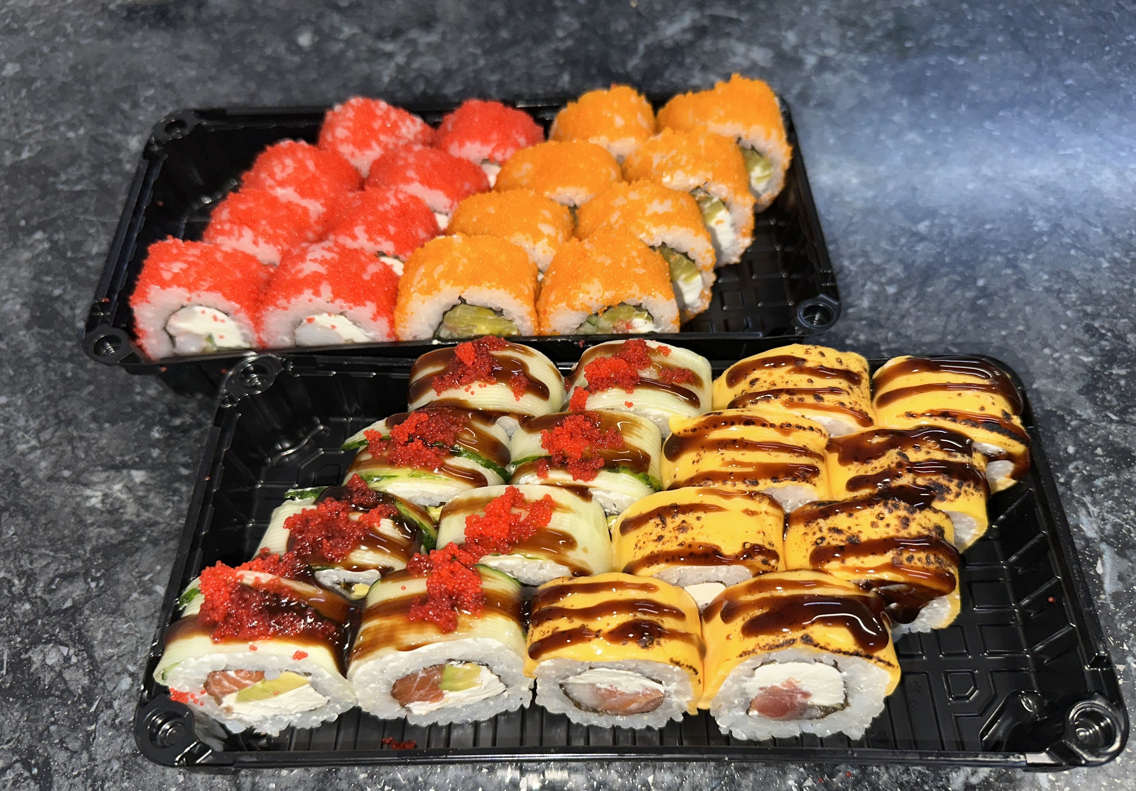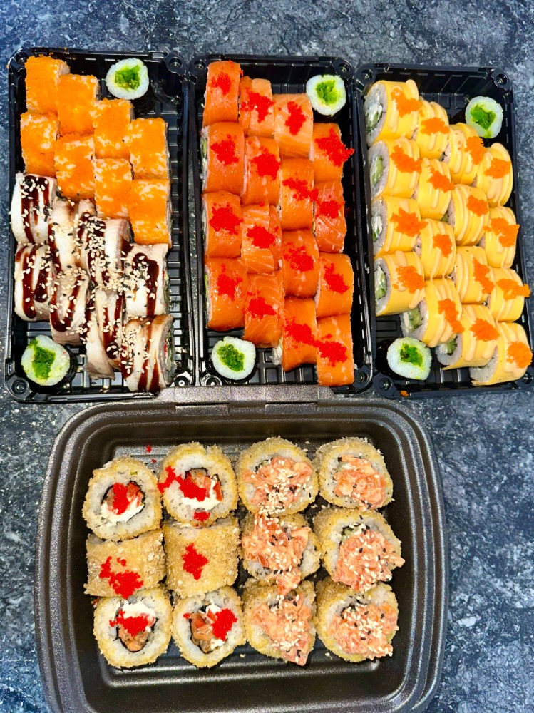 Складається з макі ролів з лососем, тунцем, авокадо, креветками, масляною, огірками та чукою.