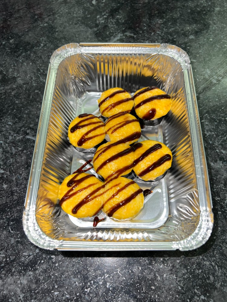 Розрізаємо навпіл для зручності та поливаємо Манго-Чилі соусом!