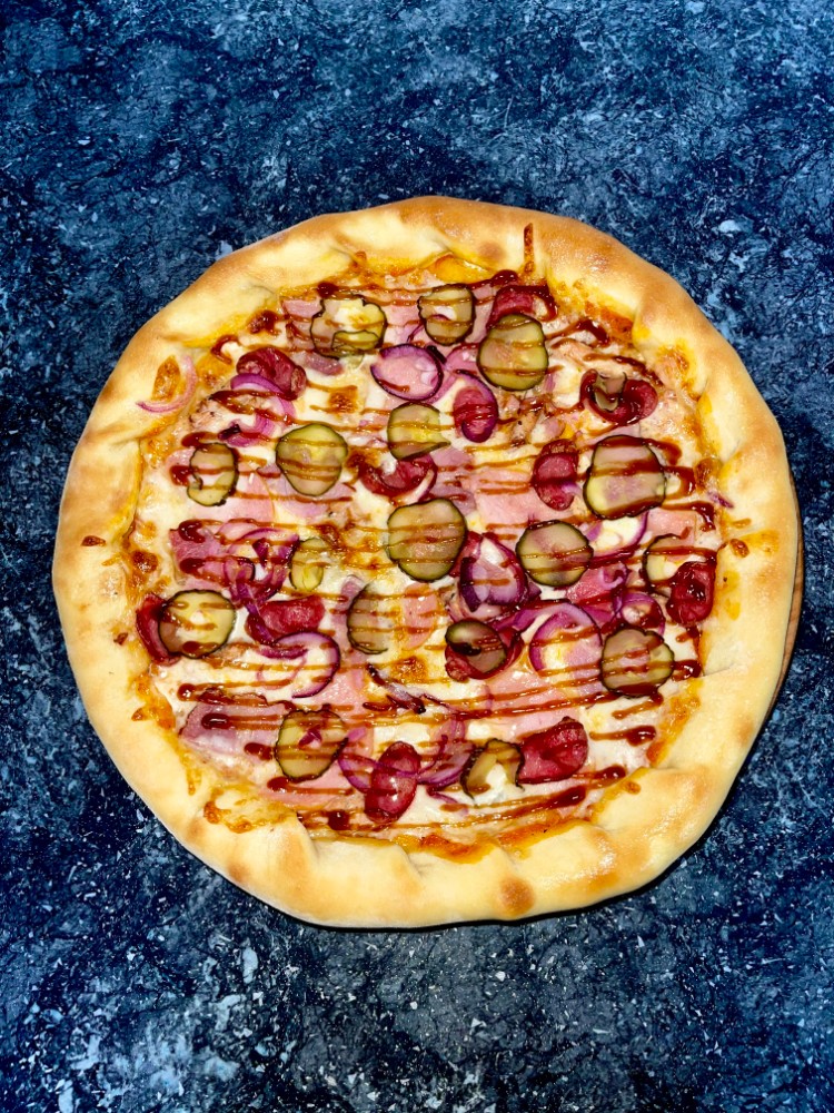 Розрізаємо навпіл для зручності та поливаємо соусами!Маса: 450г.